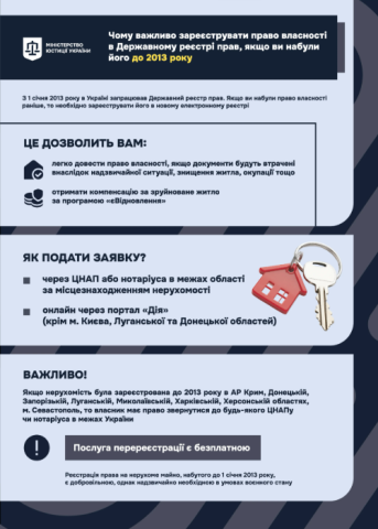 Таким чином, громадяни не мають обов’язку «перереєстрації» речових прав, що виникли до 01 січня 2013 року, однак це є необхідністю в умовах воєнного стану.