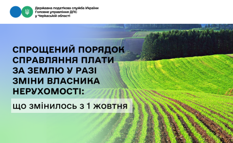 З 1 жовтня 2025 року діє спрощений порядок справляння плати за землю у разі зміни власника нерухомості. Про це нагадує начальниця Головного управління ДПС у Черкаській області Тетяна Харьковська.